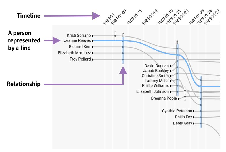 All the examples of Storylines I found in the literature suffered this same limitation. Even searching through different types of visualizations I could not find a visualization that met our needs, so we decided to create our own.