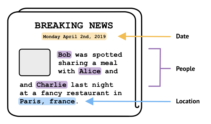 visualize the people, locations, and dates mentioned in a dataset of news articles for the data journalists at a french newspaper. The