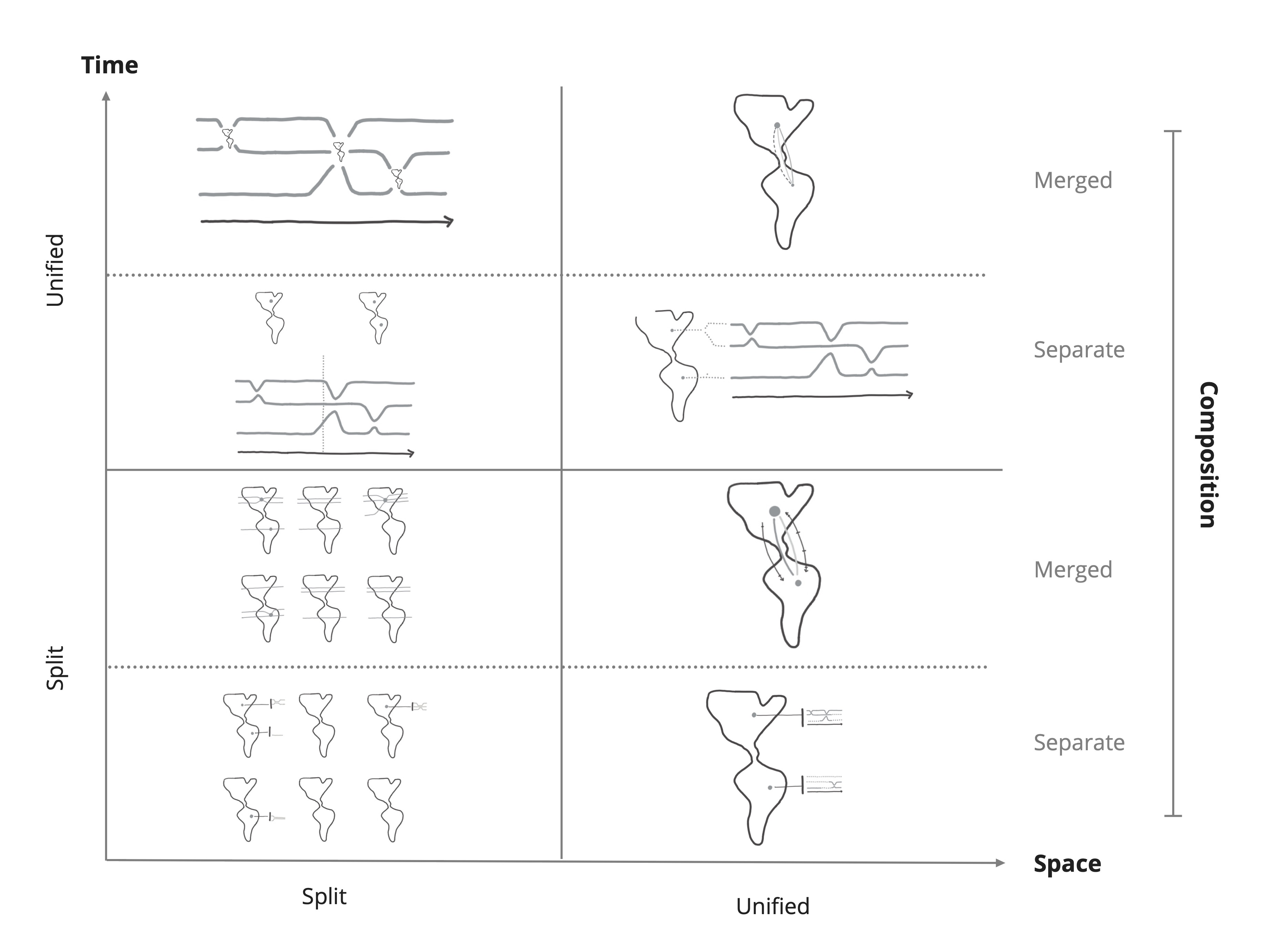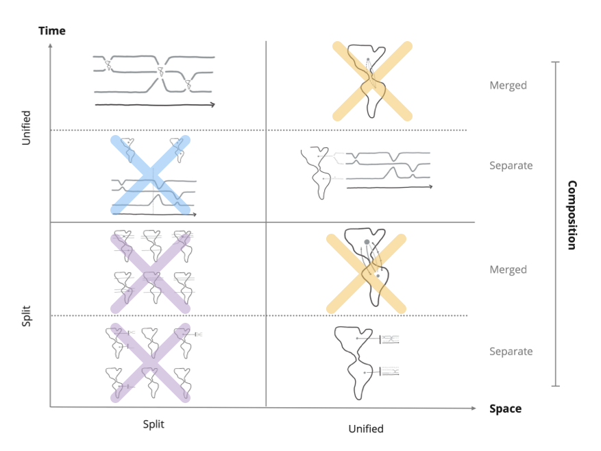 • How they combine the visualizations of time and space (composition).