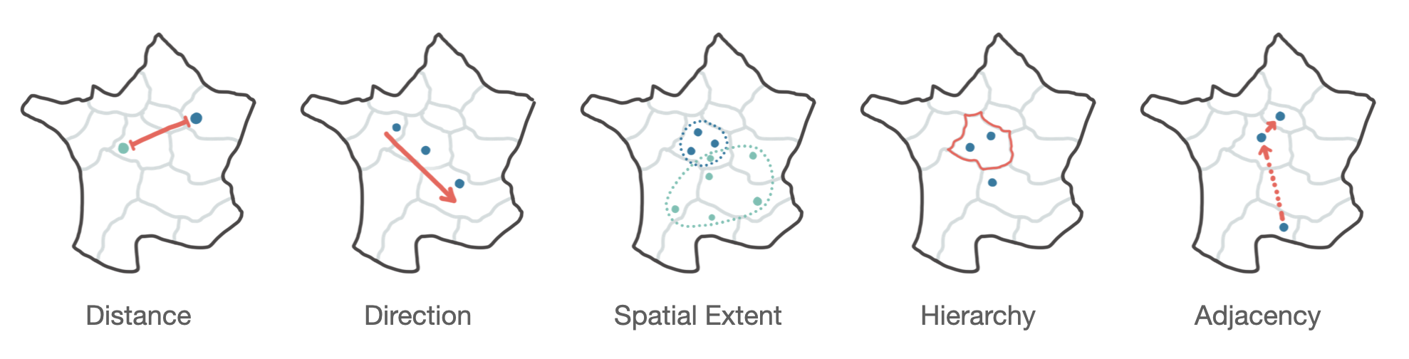 Two of the spatial patterns (Direction and Adjacency) are defined by the order in which locations are visited which gives them both temporal dimension.