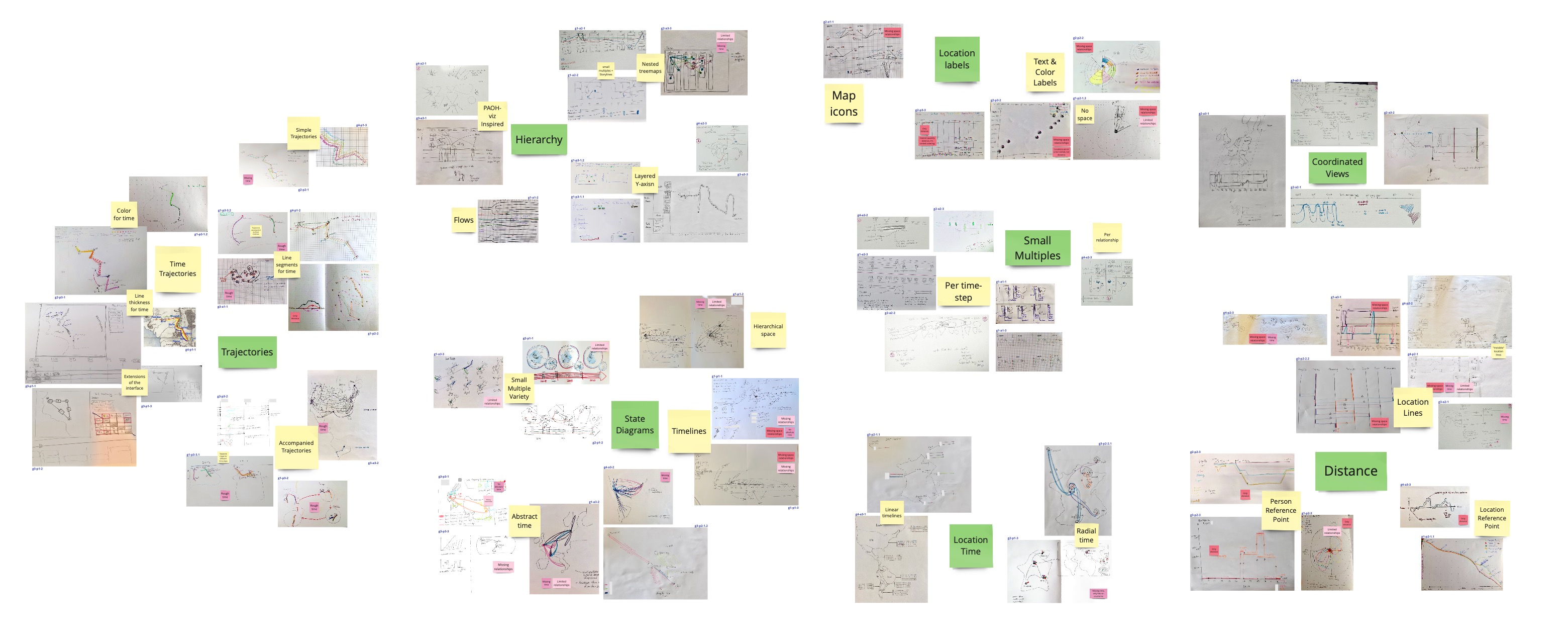 The workshop participants produced 67 sketches! To extract visualization designs from these sketches I had to analyze how the sketches differ.